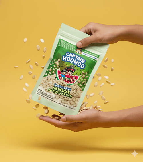 Ready-to-eat watermelon seeds without the shell. Lightly salted for a clean, nutty taste. High in protein and minerals. No peeling needed, just open and enjoy. Available in 4 flavors: Unsalted, Canto Adobo, Pinoy Classic, and Spicy Classic. Perfect for snacking anytime, anywhere.